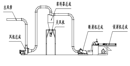 YMX-300A型液壓鎂屑機(jī)(全自動液壓鎂屑機(jī)、鎂屑斷屑機(jī)、碎屑機(jī)、鎂粉造粒機(jī)、鎂粉磨機(jī))由鎂屑機(jī)、斷屑機(jī)、風(fēng)機(jī)、液壓站、落料器、配電柜六部分組成(如下圖)。?